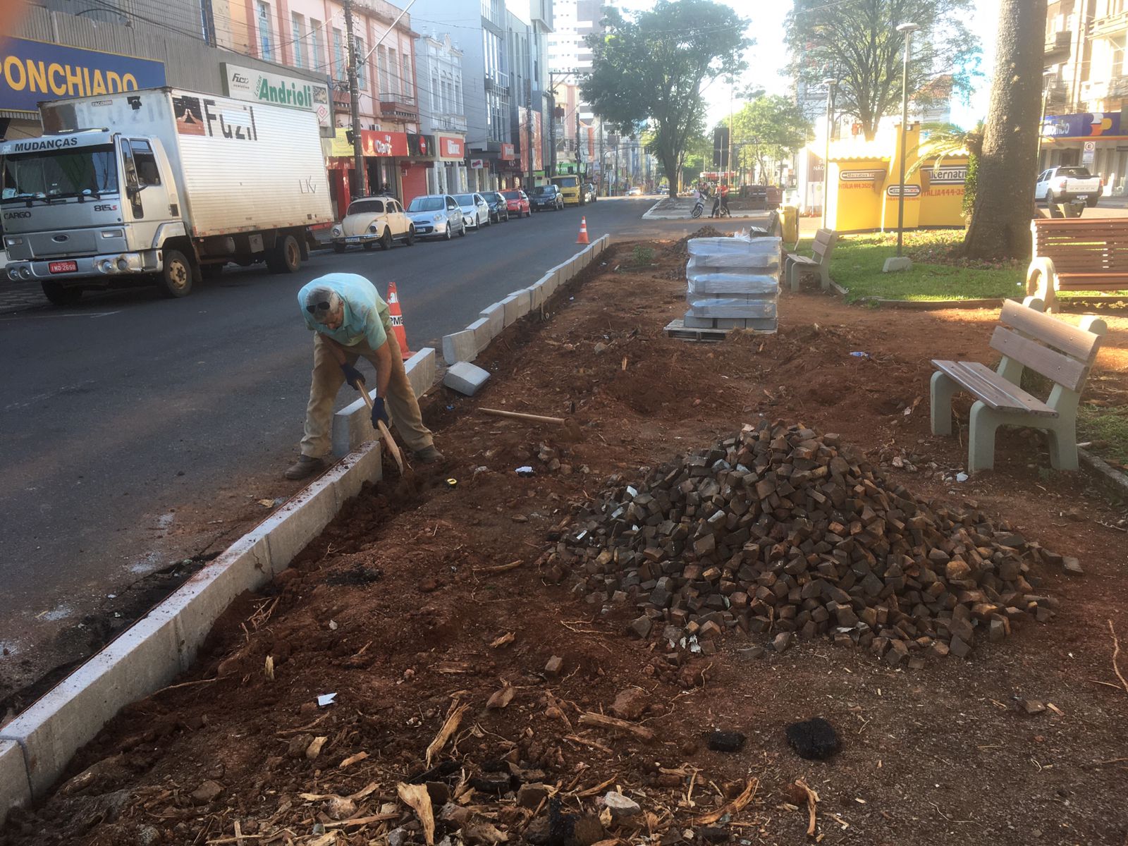 Legenda: Sozinho, seu Luiz restaura canteiros centrais e remodela o centro de Erechim
